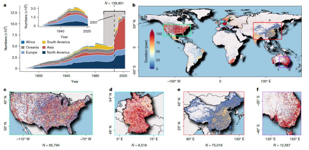 全球降水地面观测台站的分布与变化(1900~2022年)