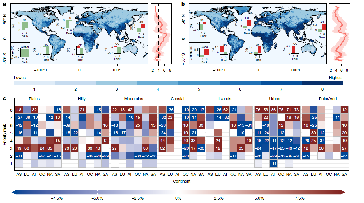 未来时期(2025–2100年)全球降水观测台站选址优先级别
